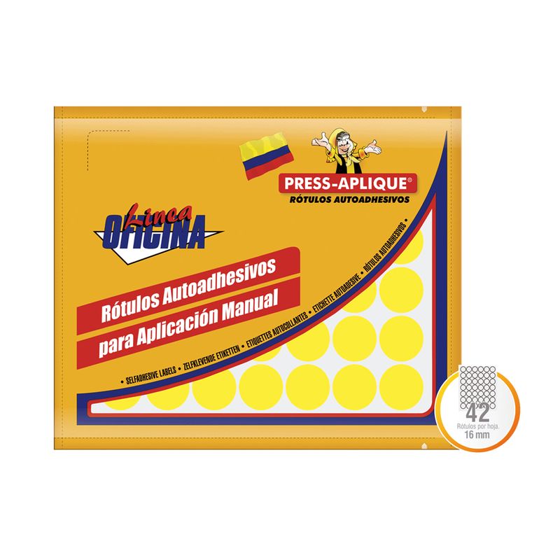 Etiqueta Adhesiva Redonda 16Mm Amarilla Press Aplique Paquetex714
