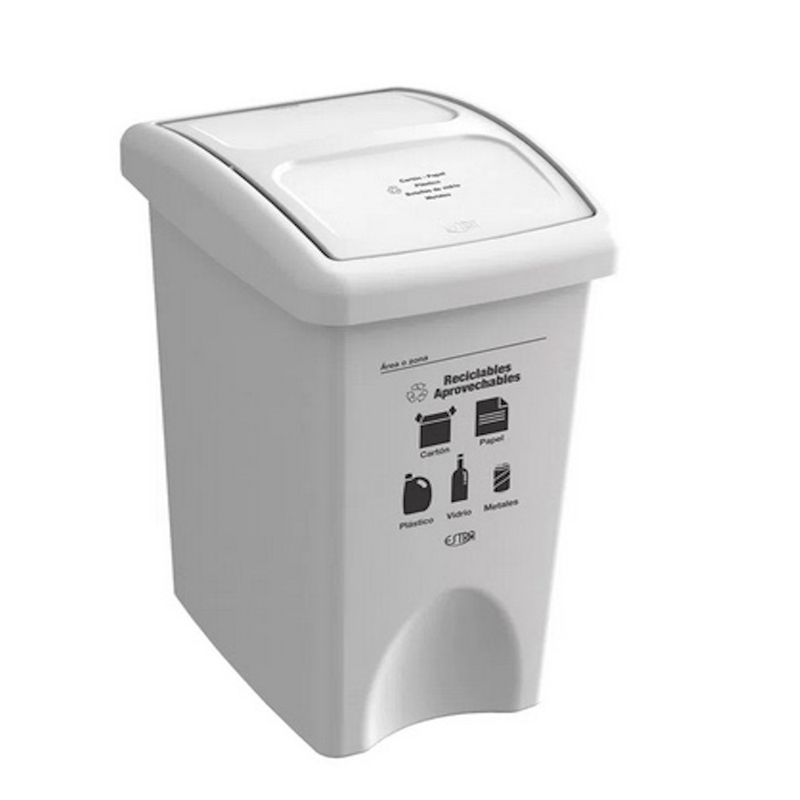 Papelera Vaiven Plana 35 Litros Reciclable Aprovecha Blanca Marca Estra